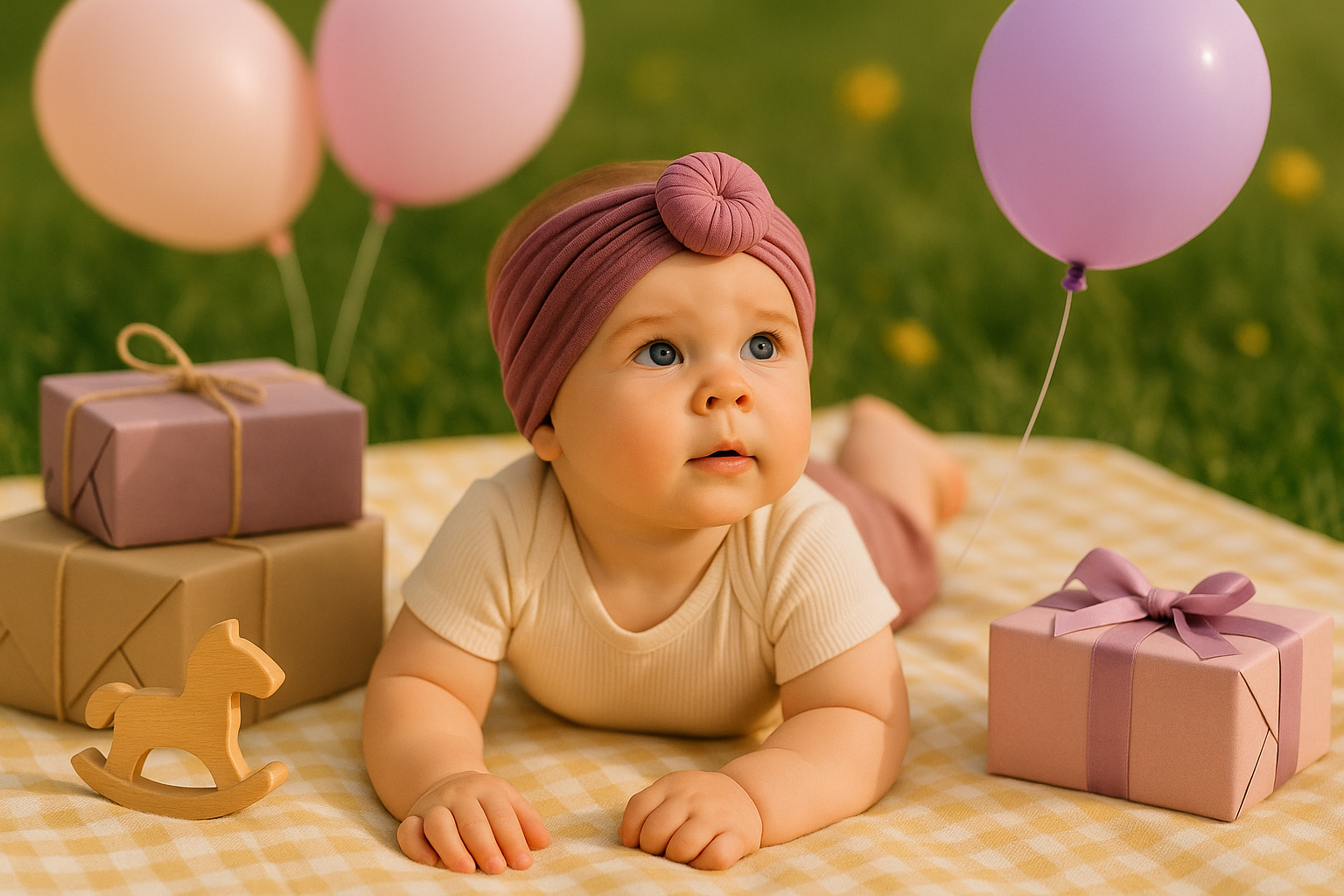 Ajoutez une touche de charme à votre Baby Shower avec notre bandeau ultra-doux, conçu spécialement pour sublimer les premiers looks de bébé. Grâce à son tissu extensible et confortable, il s’adapte délicatement aux petites têtes sans jamais serrer ni laisser de marques.