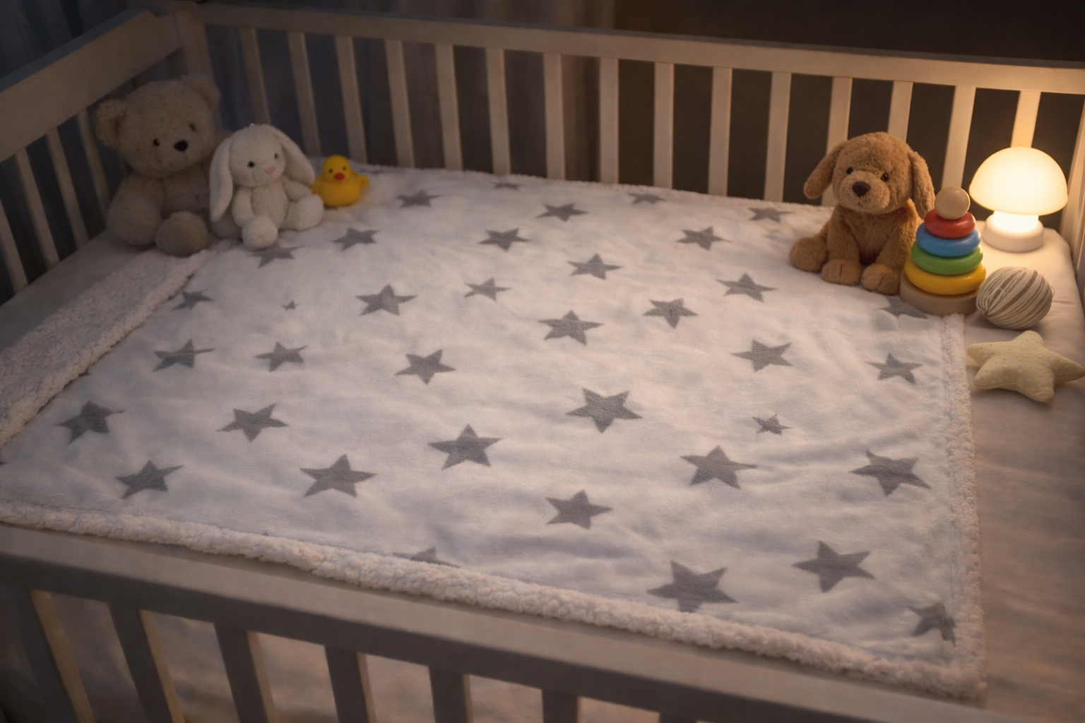 - 💤 Format généreux (76 × 102 cm) – couvre entièrement bébé